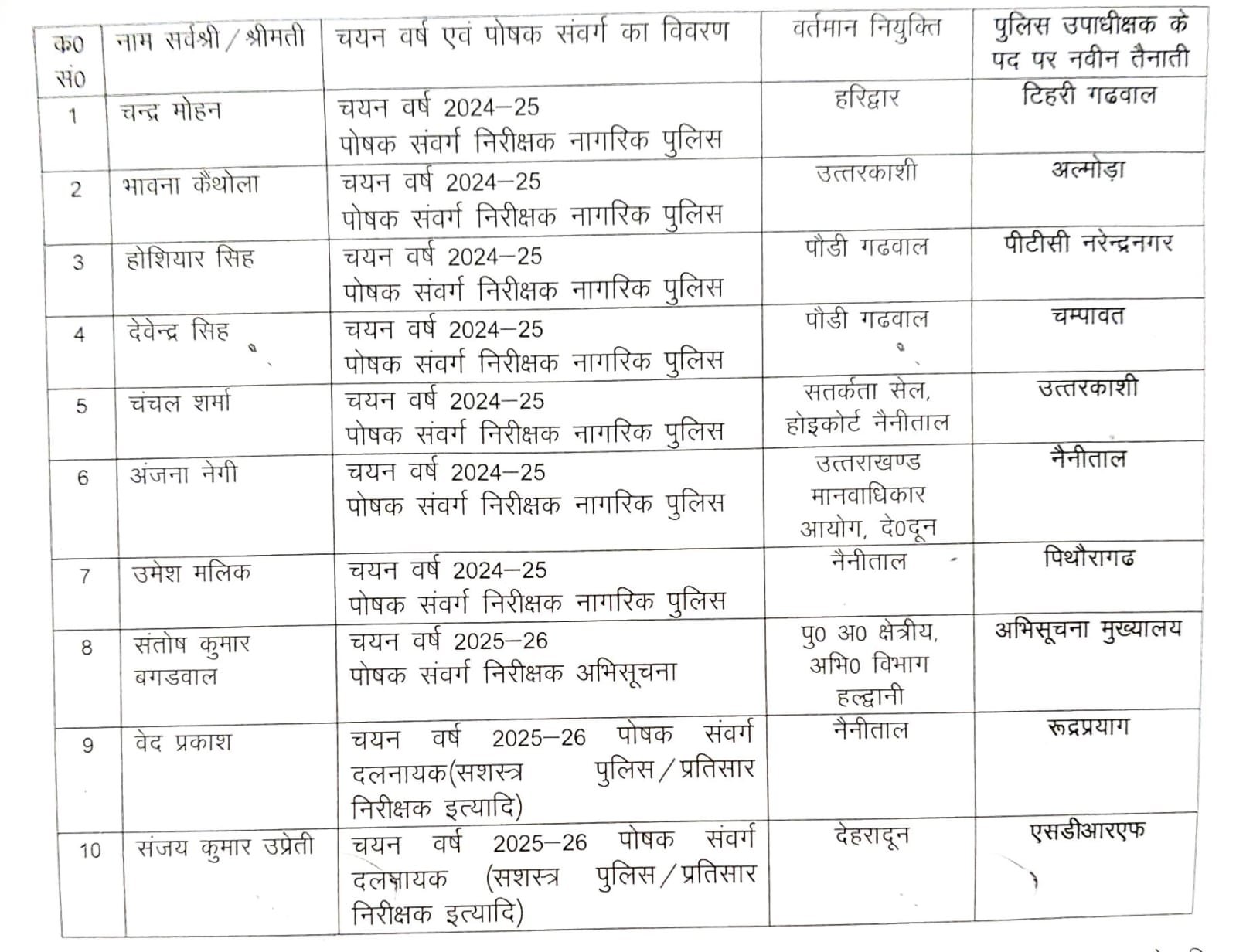 उत्तराखंड पुलिस में दस इंस्पेक्टर प्रमोशन पाकर डिप्टी एसपी बने